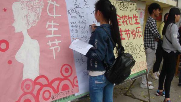 3月7日是一个关爱女生、展现女生风采的节日。2016年3月7日中午,mobile.48365365.com青年志愿者协会于第五食堂门口开展了签字送礼品活动。