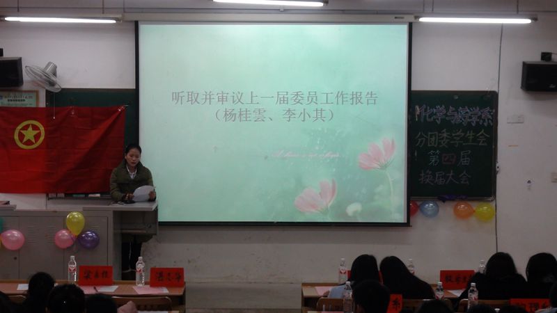 12月26日下午,mobile.48365365.com第四届分团委学生会换届大会在综合教学楼114教室顺利展开。出席本次会议的有mobile.48365365.com副书记湛志华老师、辅导员梁嘉佳老师及分团委学生会、团总支学生分会、各系学生会代表、各班团支书。