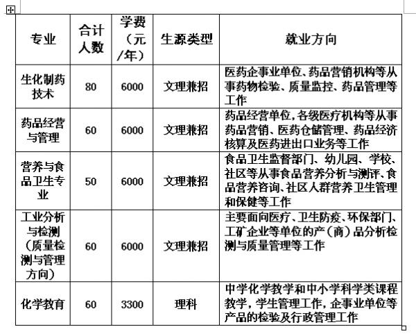 毕业生就业方向:中学化学教学和中小学科学类课程教学,学生管理工作,企事业单位、环保部门化工、食品等产品的检验及行政管理工作。